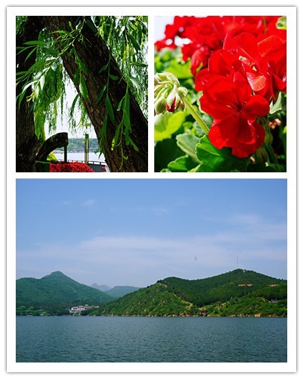 雁栖湖因截雁栖河水而成,水面宽阔,湖水清澈。每年一到春秋两季,便常有成群的大雁、天鹅等珍禽候鸟在此栖息,故而得名。我们沿湖一路行走,细细品味着雁栖湖的美丽湖景。湖边花草繁茂、绿树葱郁;湖中碧波荡漾、水光潋滟,大家不由得陶醉在其中,在湖边拍下了集体合影。